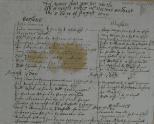 ‘Those Armors that were sent into the Isle of Wight under Mr Nortons Conduct the 8 daye of August 1599’ – Part of the muster roll for the Basingstoke Militia sent to the Isle of Wight during the first alarm